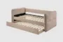 The Evie Mauve Twin Upholstered Daybed with Pull-Out Twin Trundle is a stylish and functional addition to any modern home. Its streamlined design and mauve chenille fabric offer effortless style and comfort. Perfect for work, lounging, or sleeping, this daybed provides a hidden guest bed in seconds.