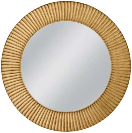 Midtown Wall Mirror is round with a 6" gold sunburst like frame. Made out of clear glass mirror. Two D ring attachment points for eases of access wall mounting are included to hang the mirror. Fill your space with this stylish wall mirror.