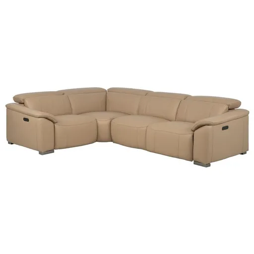 The Cordova Dark Cream Leather Power Reclining Sectional with 4PCS/2PWR is just right for your space. Made with 100 percent top grain leather where the body touches, this gorgeous modular sofa features power motion in the left and right recliners, as well as zero gravity position. This beautiful couch would look great paired with dark wooden furniture.
