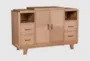 The Julio Natural Wood 2 Door 4 Drawer 54" Sideboard Buffet brings a modern touch to your dining room or kitchen. Crafted from solid pine and technical veneer, this piece offers both durability and aesthetic appeal. Its natural wood finish and ample storage make it a practical addition to any home.