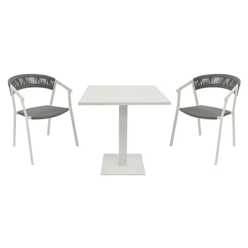 The Breeze 3-Piece Patio Set’s simple modern style can be integrated into your balcony or inside your home. Two chairs made of pure white rust proof aluminum and stone gray polyester fabric ensures durability with the same construction applied to the square dining table to ensure a long-lasting design that fits in any setting. Seating for up to two guests is possible as you plan casual appetizers and meals with your partner or close friend.