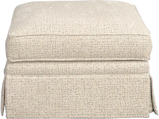 The 5000 ottoman has a skirted bottom with a pillow top cushion and is featured in a cream and gray speckled fabric.