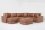 Alicia Saddle Brown Vegan Faux Leather 140" 4 Piece Sectional With Left Arm Facing Chaise & Ottoman | Furnzy.com - Shop local furniture stores in one place