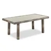 The Contempo Collection is a casual contemporary outdoor patio collection ideal to complement any backyard environment. Handwoven with large synthetic strands of resin wicker over a powder-coated aluminum frame, this table is built for outdoor performance. The barnwood colored (Husk) wicker consists of shades of dark brown and light brown for a transitional look that will never go out of style. The lounge dining table husk resin wicker frame includes an 8 mm beveled tempered glass top, with an umbrella hole, which will accommodate any of our umbrellas. The height and breadth of the table is uniquely designed to create a dining space, by adding seating components, sold separately, so you can dine while lounging on your furniture outdoors.