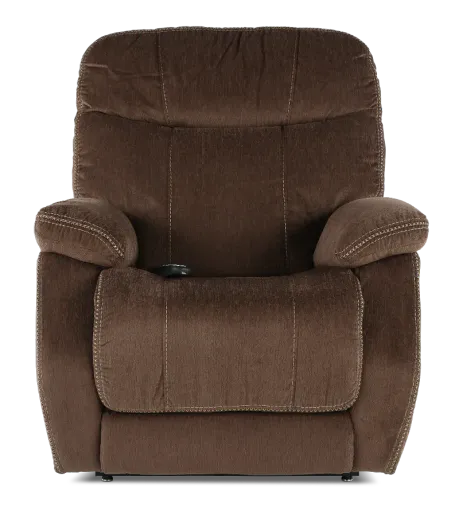 Bring home this rich brown lift chair. Off-white seams add an extra visual dimension. This is a power recliner with a lift function and is considered a Class II Medical Device. Therefore, the testing for wear is 3 times more than a typical motion factory's mechanisms and yarn/seam strength. Perfect for aiding individuals with mobility impairments, this chair adds functionality and style to your living space.