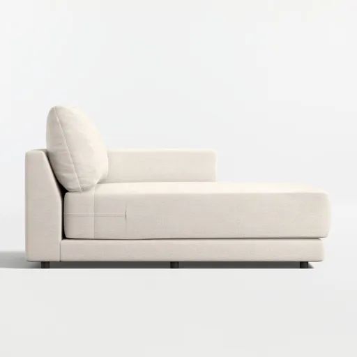 Everyone's invited to Gather. Clean-lined and current, the Gather sectional strikes the perfect balance between comfort and modern style. The right-arm chaise breaks new ground with a thin deck that puts all the focus on its boxy, extra-plush seat cushions. Trim top-stitching and a seamless armrest keep the look neat, not fussy. An exclusive Crate and Barrel design, the Gather right arm chaise is made with engineered wood certified by the Forest Stewardship Council (FSC ®), the environmental gold standard for responsibly managed forests.
