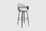 The Waylon 26" Grey Faux Leather + Black Wood Barstool provides a comfortable and stylish seating option for your dining room or kitchen. With its modern design, this barstool combines the soft touch of grey faux leather with the sturdy support of black wood. Ideal for food prep and serving spaces, it enhances any dining area with its sleek, functional design.
