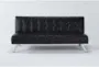 The Kooper Black Faux Leather 66" Convertible Futon KSofa Bed with Stainless Steel Legs offers a stylish and practical solution for your living room. This contemporary futon provides firm comfort and effortlessly converts into a twin-size bed for versatile use. The tufted design and tight back enhance its sleek appearance while the armless feature ensures a modern touch.