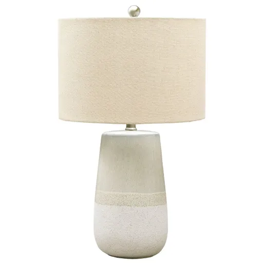 Brighten up your favorite room with this textured glazed Shavon table lamp. Chic boho vibes will make your home feel like an oasis. This transitional lamp is made of glazed ceramic and accented by the fabric drum shade. The combination of different cream shades will match virtually any room decor.