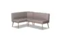 The 70.25" Oderra Grey Fabric Upholstered and Walnut Brown Finished 2-Piece Wood Dining Nook Banquette is a stylish addition to any dining area. This mid-century modern set includes one armless bench and one corner bench, providing ample seating with a sophisticated look. Constructed from durable rubberwood and engineered wood, it features a walnut brown finish that complements the grey polyester fabric upholstery, padded with foam for added comfort.