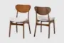 Katya Mid-Century Modern Grey Fabric Upholstered & Walnut Brown Wood Dining Chair Set Of 2 | Oak | Armless | Furnzy.com - Shop local furniture stores in one place