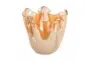 The 9" Iridescent Orange Bartoli Artisan Blown Glass Vase adds a touch of modern sophistication to any room. Its organic shape and soft tan color create a contemporary look that is both stylish and understated. This vase is perfect for displaying fresh flowers or as a stand-alone decorative piece.