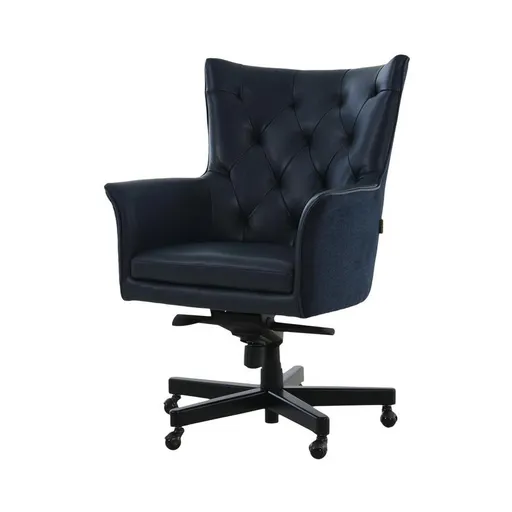 Part of our exclusive Carlo Perazzi collection, the Dylin Blue Desk Chair offers the comfort of a leather couch with the versatility of a 360 degree swivel chair. It features tufted accents along the high back design, wide seating and curved arms that are complemented perfectly by the microsuede fabric. Modern in style and function, this piece also includes an adjustable height and locking tilt mechanism, plus built-in casters made of black aluminum for easy mobility.