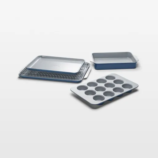 You'll be smitten with this beautifully designed bakeware set that's as amazing to look at as it is to use. Featuring minimalist designs, deep blue exteriors and a non-stick ceramic finish, these pans are a joy to cook with. The set is versatile enough to take on any recipe and makes a fabulous wedding, graduation or housewarming gift. To keep things orderly inside kitchen cabinets, the five-piece navy bakeware set includes an organizer that corrals all of the components.
