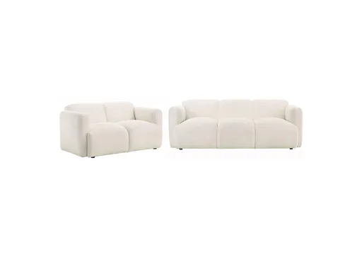 This sculptural sofa set blends soft curves with modern simplicity for a cozy, elevated lounge experience. Each piece is wrapped in richly textured fabric and designed with a low-profile frame, rounded edges, and wide track arms that invite you to unwind. High-quality foam and pocket coil seating ensure supportive comfort that lasts. With its seamless silhouette and tactile finish, this sofa set offers minimalist warmth and relaxed sophistication for any contemporary living space.