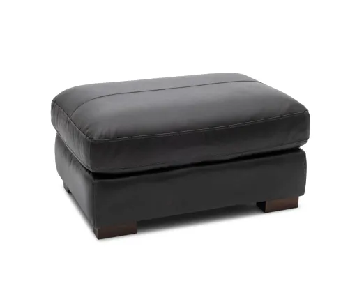 The Gunner Ottoman is a versatile leather ottoman with high-density foam cushioning. Complements modern living spaces in brown or gray.