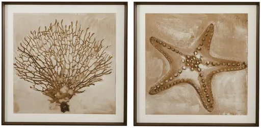 Bassett Mirror Neutral Seafan & Starfish 2-Piece Framed Print Wall Art Set