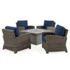 The Sonoma Collection is a casual outdoor patio collection designed with wicker consisting of shades of dark brown and light brown for a contemporary blend suitable for almost any outdoor space. This 5 piece chat set is handwoven with 16mm half round PE synthetic strands of resin wicker over a fully welded, handmade aluminum frame. Each piece features a multi-step powder-coated finish and supported inner walls, making it built for outdoor performance. The club chairs feature gently curved, wide arms and the feet are a continuation of the wicker frame. Paired with deluxe Sunbrella® cushions set upon web seat suspension, this set is a great way to experience the ultimate comfort and style.