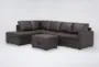 Introducing the Mathers Grey Brown Vegan Faux Leather 2 Piece Sectional, designed to elevate your living room with its modern style and practical features. This sectional includes a right arm facing sleeper sofa and a left arm facing corner chaise, complemented by a versatile ottoman. The grey brown faux leather upholstery offers a sophisticated look while being easy to maintain.
