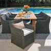 Laguna Smoke Outdoor Wicker and Solid Teak with Cushions 9 Piece Dining Set 78102 x 39 in Extension Table