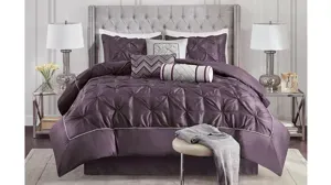 This beautifully tufted bed is from the Laurel bedding collection. Its deep plum coloring makes this set create a statement in your bedroom. The collection is made from 100% polyester polyoni and has pieced fabric sewn together to give this set dimension. It is finished with a smooth edge of fabric that creates a beautiful border around this comforter.