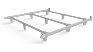 The emBrace king bed frame combines beauty with strength to meet the demands of today's luxury bedding. Contoured side rails and tapered legs in a sleek white polymer resin offer a designer look, while a heavy-duty steel core and no-flex construction provide a solid, quiet foundation. The frame can be used with or without a headboard and glides easily on carpeted or hardwood floors.
