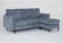Introducing the Bradley Denim Blue Fabric Modern 81" Sofa with Reversible Chaise, a stylish addition to any living room. Upholstered in 100% polyester fabric, this sofa offers both comfort and durability. The reversible chaise allows for versatile seating arrangements, making it perfect for any space.