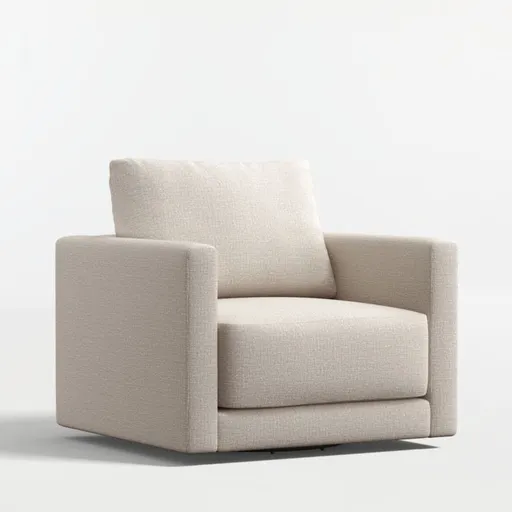 Striking the perfect balance between comfort and modern style, Gather is clean-lined and current. Sized for smaller spaces, the petite swivel chair features a boxy, extra-plush seat cushion made with inner-coil construction for maximum comfort and durability. A fiber-filled back cushion settles you in for the ultimate lounge, while the 360-degree swivel gives you a sweeping view of the room.