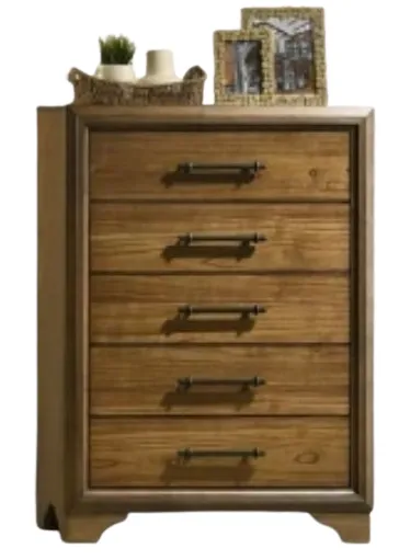 The Harmony 5-Drawer Chest epitomizes the charm of transitional style. The neutral, warm, and versatile tone of the piece’s solid and engineered wood framing creates an inviting essence and simplifies pairing with other pieces.