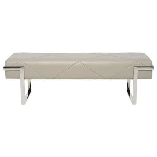 Give your decor a style upgrade with the impressively elegant Vanesa Bench. This leatherette piece features a soft gray color, polished metal legs, and button-tufted accents. Its modern appeal and luxurious appearance make this long seat the perfect addition to your space.