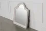 Introducing the Kincaid Ivory White Wood 39" Mirror with an arched design. This traditional accent mirror features a weathered white finish that adds a soft and neutral touch to any bedroom decor. Crafted from cathedral okoume veneer and solid hardwood, it combines timeless style with lasting durability.