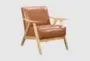 Hammond Matte Brown Faux Leather Wood Accent Arm Chair with Natural Finish | Solid | 100% Leather | Club | Furnzy.com - Shop local furniture stores in one place