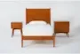 Alton Cherry II Twin Wood Platform Bed & Headboard 3 Piece Bedroom Set With Nightstand & Night Table | Adjustable Base Compatible