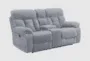 Bravo Stone Polyester 78" Power Reclining Console Loveseat With Power Headrest | Cup Holders | Fabric