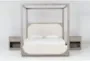 Harland Queen Wood & Upholstered Canopy 3 Piece Bedroom Set With 2 1-Drawer Nightstands | Pine | Poster