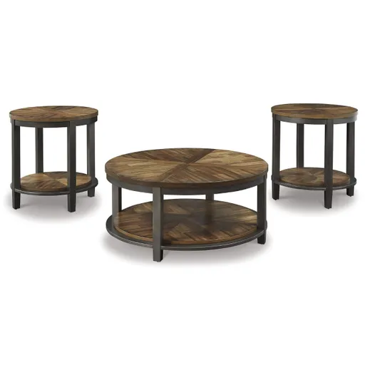 The Roybeck 3-Pack Tables bring together modern design and rustic warmth with a natural acacia wood finish and butterfly-patterned veneer. Framed in a dark bronze-tone wood for contrast, this set includes one coffee table and two end tables, each featuring a fixed shelf for added function and style. These tables offer durability with striking appeal.