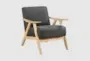 Bring modern style to your living room with the Hammond Dark Grey Wood Accent Arm Chair. This club chair features a dark grey 100% polyester fabric that complements its natural rubberwood frame. The design combines comfort with a sleek, contemporary look, making it a perfect addition to any living space.