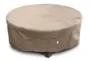 Protect your outdoor fire pit with the KoverRoos®III Round Fire Pit Cover, which measures 45 inches in diameter and 21 inches high. This durable cover in taupe is designed to keep your fire pit safe from the elements. The synthetic polypropylene fabric is equipped with a shock cord to ensure a secure fit.