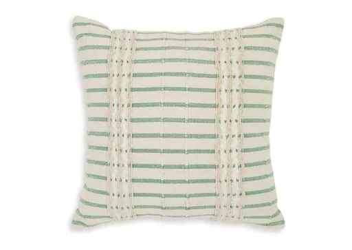 Dress up your sofa or bed with the casual charm of this accent pillow. It's a timeless addition to your decor, with a simple striped pattern that's both classic and modern. The pillow's white, green and natural hues make it beautiful living on its own or layered with others.