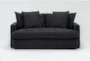 Transform your living room with the Grand Down III Black Fabric 74" Condo Sofa. This modern sofa features a loose reversible back, providing both comfort and flexibility. The black fabric upholstery adds a touch of sophistication, making it a perfect addition to any space.