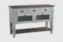 Introducing the Stead Grey Wood 56" Sideboard Buffet, a perfect blend of traditional and farmhouse styles. This exquisite piece features a two-tone finish in Tobacco Leaf and Alpine Grey, crafted from solid mahogany wood. Its elegant design and practical features make it an ideal addition to any kitchen or dining room.