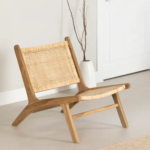 This accent chair, with its refined, exotic style, will help create a calming atmosphere in your living room, bedroom, or basement. The combination of teak wood and natural rattan, and the minimalist angular design, are totally trendy. Place it near a window, next to a lush plant, and you'll have a great space in your home for re-energizing after a long day. This fabulous chair is great for sitting down with a book or just chatting with friends in your living room. It’s made of teak wood and rattan – natural materials that inspire harmony. Each piece is unique, and the variations in the wood tones add to its charm. This chair, with its flawless design, will be part of your décor for many years. Available for Online Purchase Only. Assembly required. This product ships direct from the manufacturer, so RC Willey Delivery is not available.