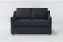 Introducing the Porthos Midnight Navy Blue Fabric Loveseat, a perfect addition to your living room. This modern loveseat features a deep navy color that adds a touch of sophistication to any space. The reversible orientation and foam cushions ensure both comfort and versatility.