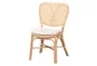 The Nadira Modern Bohemian Natural Brown Rattan Dining Chair combines modern style with bohemian charm. Crafted from natural rattan, this chair features a crisscross base and a removable cushion padded with foam and upholstered in fabric, ensuring both comfort and style.