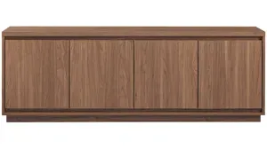 Combine functionality and eclectic modern design with this contemporary Presque TV stand. Its rich wood tone creates a warm neutral palette that will blend seamlessly into any color scheme, while its classic styling pairs perfectly with the existing design inspiration of your living room, den, or game room. This solid-backed stand features two large enclosed cabinets with a 3-way inward beveled edge, adding dimensionality. Cable management cut-outs and adjustable inner shelves help keep your media storage and consoles organized.