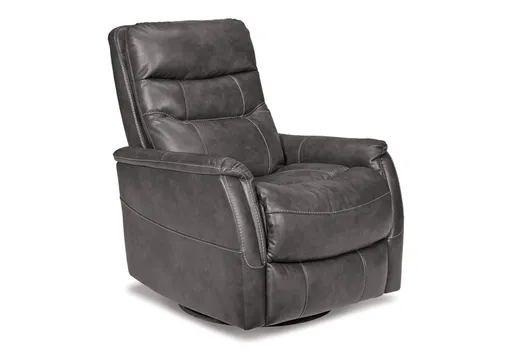 If you agree it’s high time for better form and function from your furniture, the Riptyme swivel glider recliner with gentle rocking motion might be just your style. Indulgently comfortable yet anything but bulky, its space-conscious design pairs slimmed-down armrests with a roomy seating zone for maximum comfort. Rest assured, the sumptuously cushioned 41" high back is head and shoulders above the rest. Thanks to an EZ Pull tucked discreetly inside the armrest, while this faux leather chair may be a recliner, it sure doesn’t look like one.