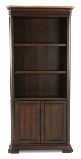 Keep your home office organized with this classic two-tone brown bookcase. The mahogany and alder wood provides strength that will last a lifetime, while the rich, coffee roast finish highlights the natural wood grain. The open shelving above allows you to display your favorite book collections and home decor items, while the lower storage cabinets provide space to keep extra office supplies tucked neatly away. Get the perfect fit for your items with three adjustable shelves. This piece stands strong on its own, or pair it with the rest of our Sonoma collection for a complete home office design!
