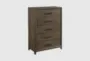 The Hendrix Brown Wood 5-Drawer Chest is a stylish and practical addition to any bedroom. Its modern design features a wired brush dark walnut finish that complements various decor styles. Constructed from mindi veneer and solid pine, this chest offers durability and timeless appeal.