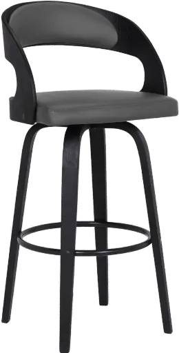 Add a touch of mid-century modern glamour to your home with the Shelly gray swivel bar stool. The retro silhouette exudes timeless appeal that would easily fit into any home regardless of the existing design theme. The Shelly kitchen stool features a beautiful wood frame and seat back that wrap around a luxurious high-density foam cushioned back and seat. Upholstered in soft faux leather upholstery, the Shelly provides a full mobility with a 360-degree swivel function that enables you to engage with your guests regardless of their place in the room at parties or gatherings, making this ideal for entertaining. Available for Online Purchase Only. Assembly required. This product ships direct from the manufacturer, so RC Willey Delivery is not available.