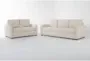 Mathers Cream Beige Fabric 2 Piece 91" Queen Memory Foam Sleeper Sofa Bed & Loveseat Set | Loose Reversible Back
